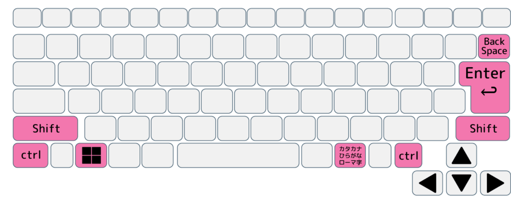 - Shiftボタン:特殊ボタン(まだ覚えなくていい)