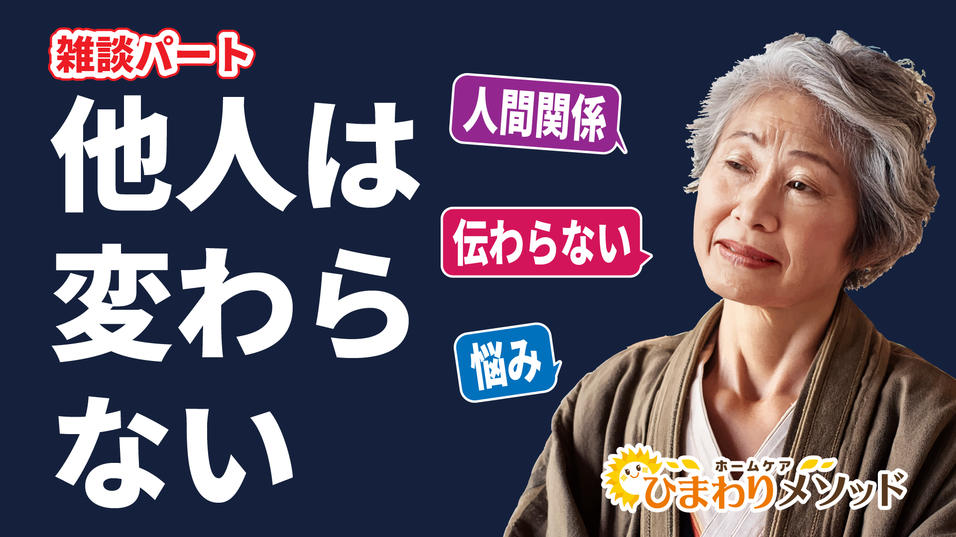 あなたは確かに「リハビリしないと歩けなくなりますよ!」とお客さまに言ったのでしょう しかしそれでも, お客様がリハビリをしない, つまり相手が変わらなければ「どうして伝わらないの?」と悩んでしまいますよね そうしている間にも時間だけが無駄に過ぎ, お客さまの要介護状態はどんどん悪くなる… 歩けなくなったから「リハビリしないともっと悪くなりますよ」 それでも, お客さまは変わらない… そうやって悩み続けると, 介護をする私たち自身が疲れ果ててしまいます