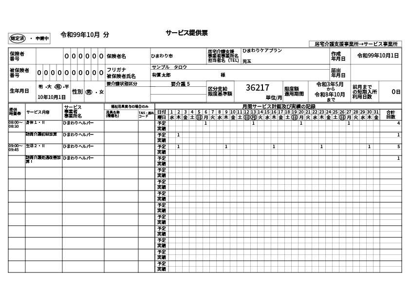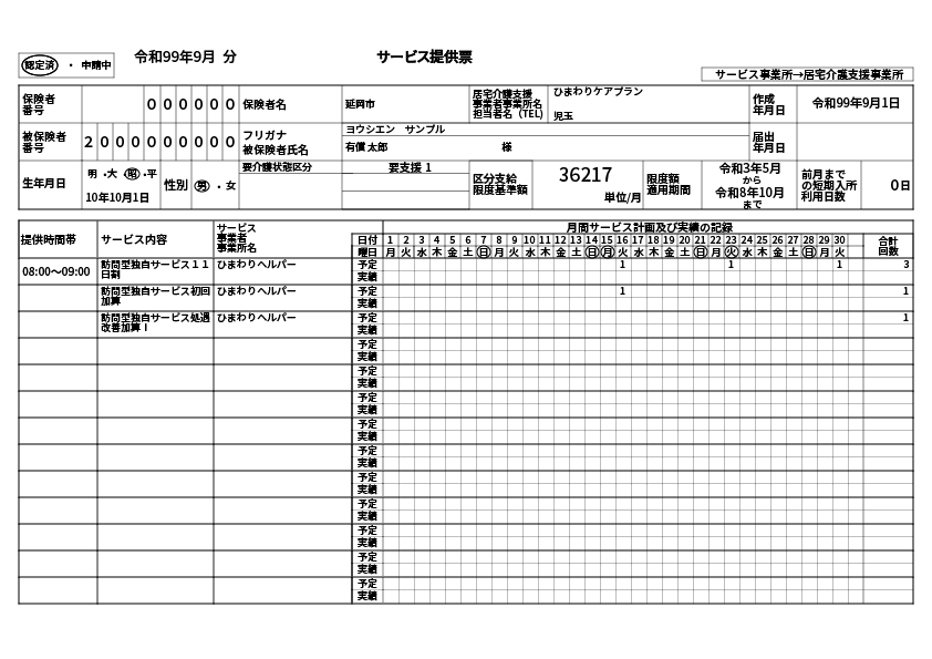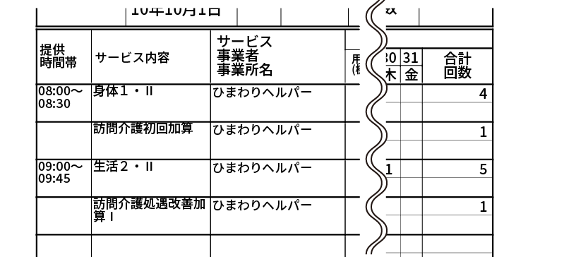 - 要介護:身体介護/生活援助/通院等乗降介助/(身体・生活複合)