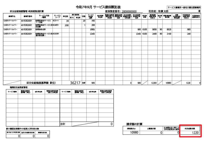 ・負担割合(1割・2割・3割)で国保連請求と利用者請求に分ける
